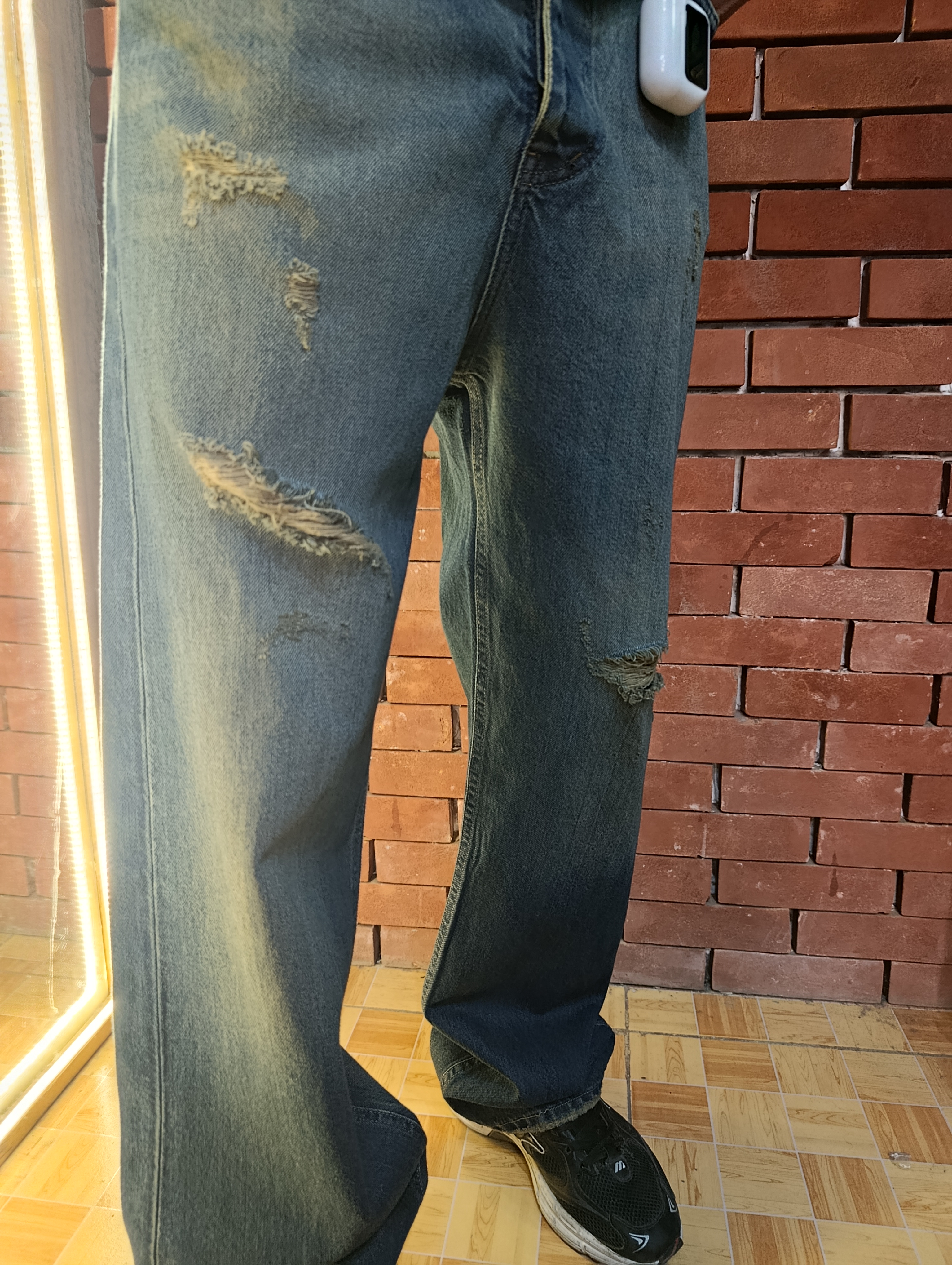 شلوار بگ استایل ابی پر رنگ زاپ داره تیره