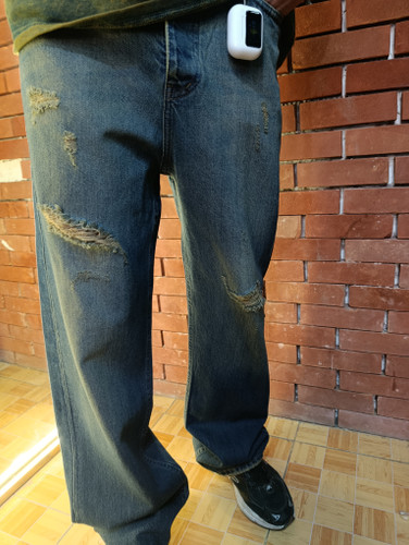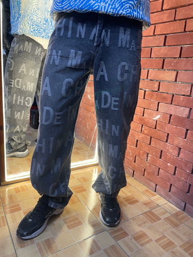 شلوار بگ استایل ابی پر رنگ زاپ داره تیره